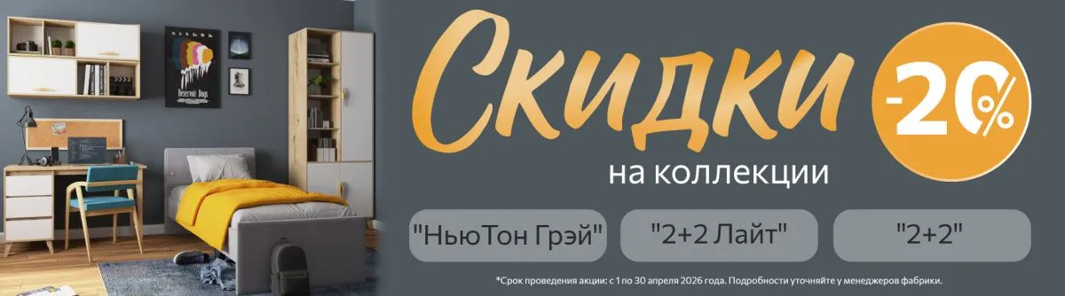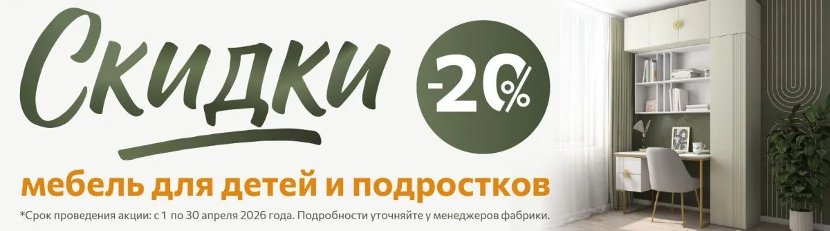 -20% на корпусную мебель и мягкие кровати, от чека 90 тыс. руб.*
