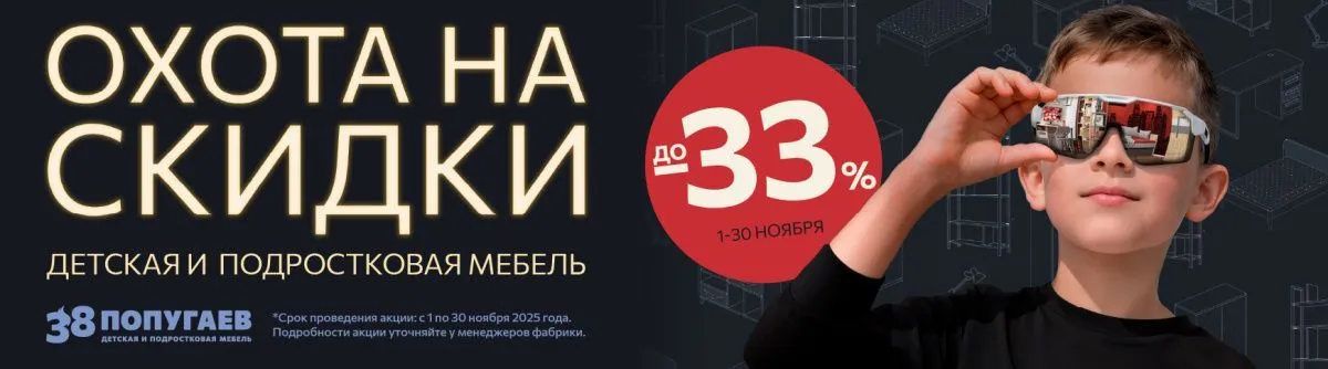 -15%, -20%, -25%, -30% и -33% на самые популярные модели корпусной и мягкой мебели, а также на выделенный ассортимент текстиля