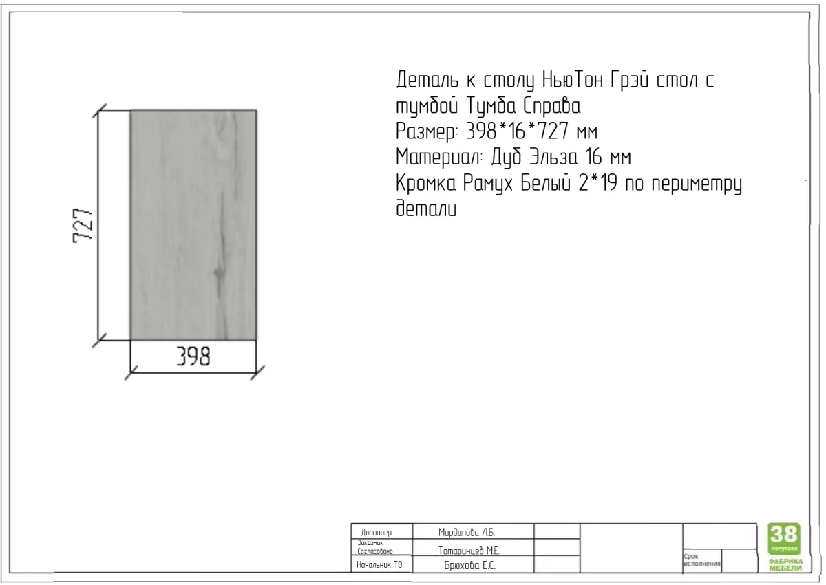 деталь к столу Нью Тон Грей тумба справа 398*16*727 мм 1