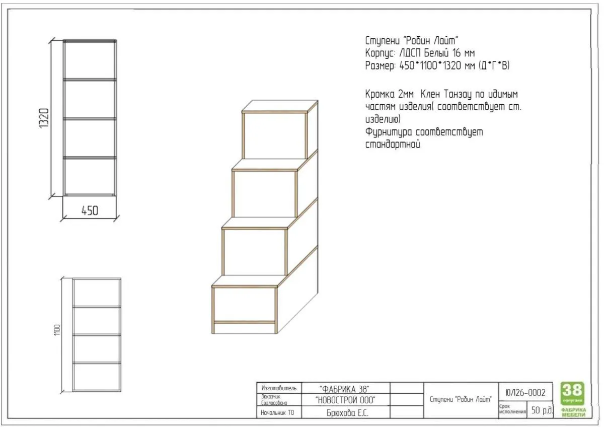 НЕСТ!!! Ступени 450*1100*1320 мм Клен/Белый 1