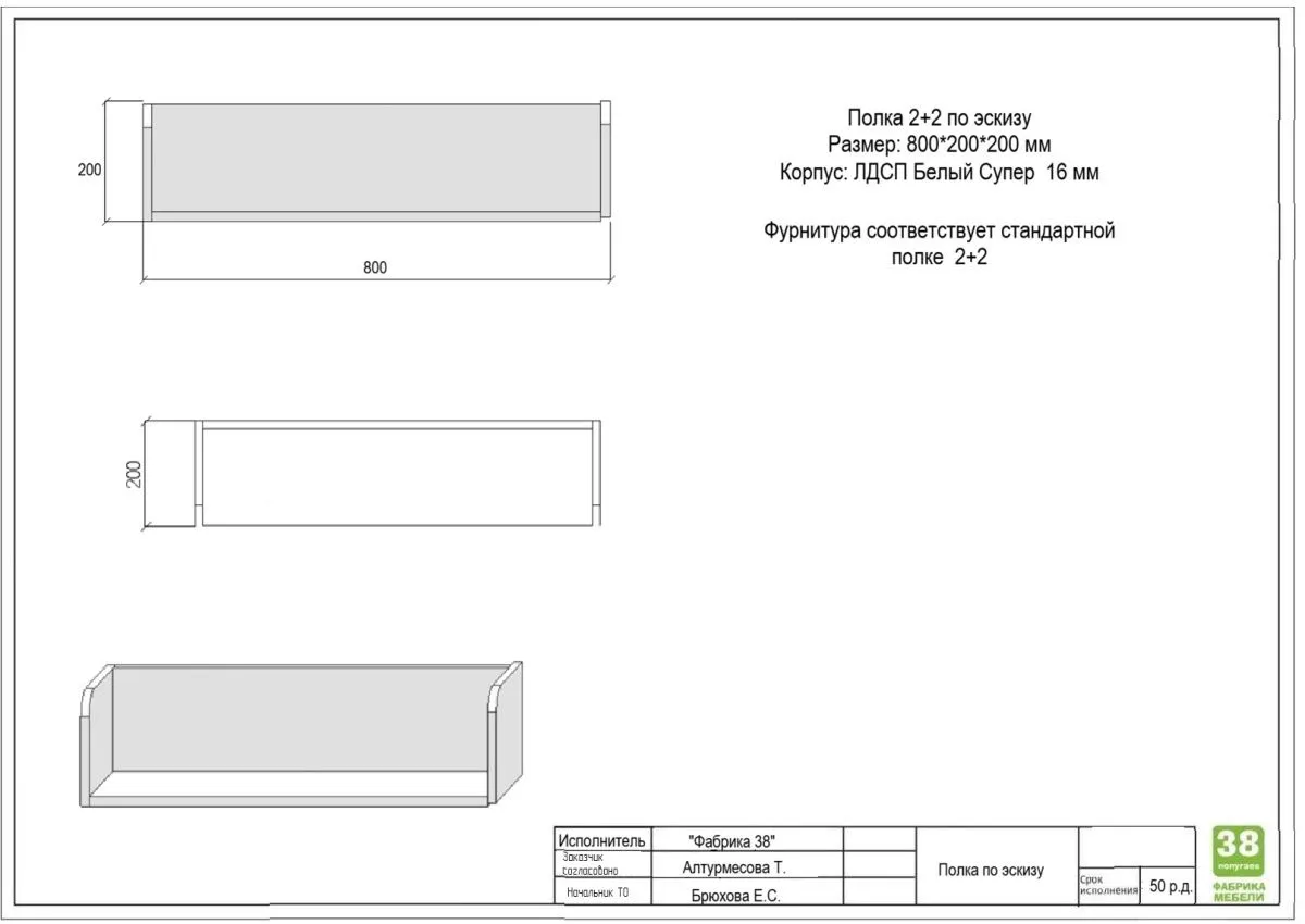 Полка по эскизу ЛДСП Дуб Ирландский 16 мм 800*200*200 мм — купить в Москве по ценам производителя