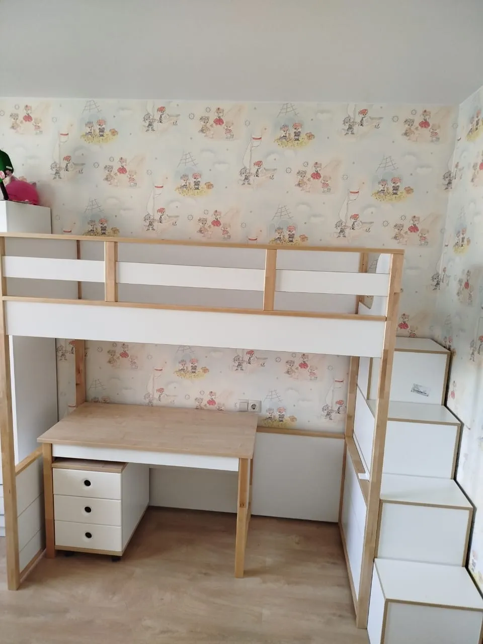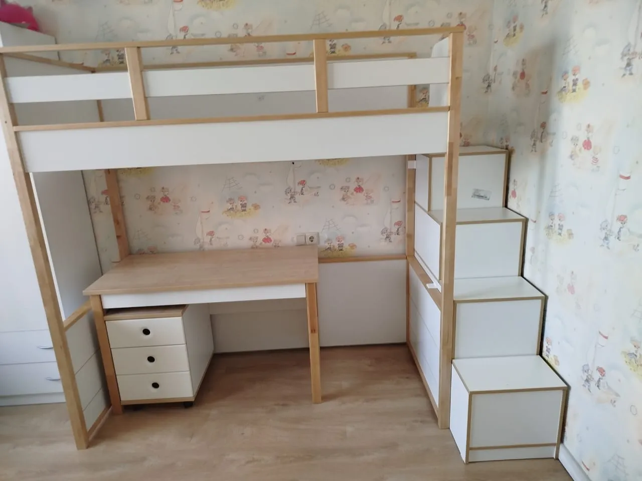Кровать чердак коллекции "Робин Лайт" отлично вписалась в пространство комнаты. Красиво. Качественно. Крышки ступеней можно использовать для хранения вещей, очень удобно.