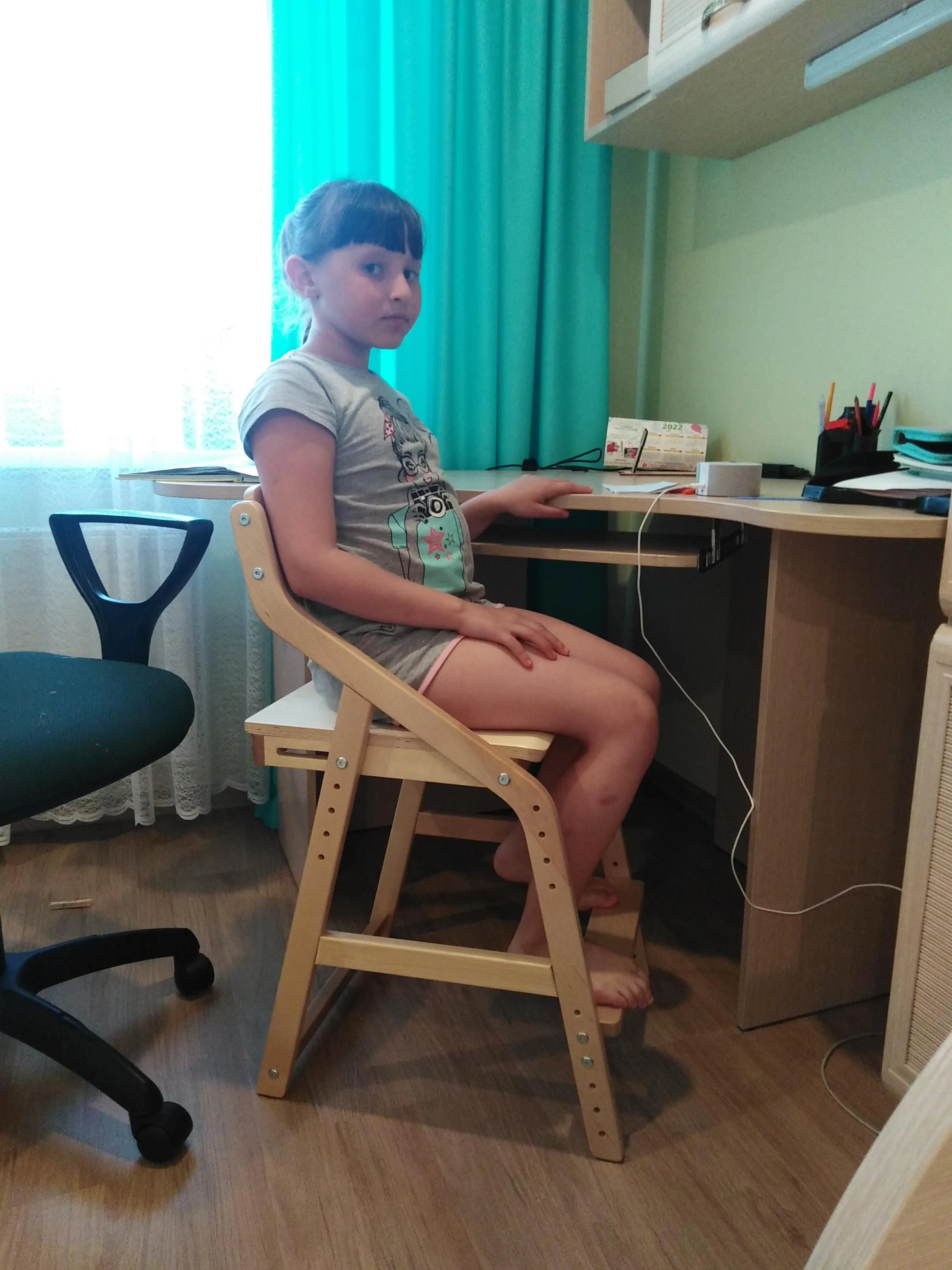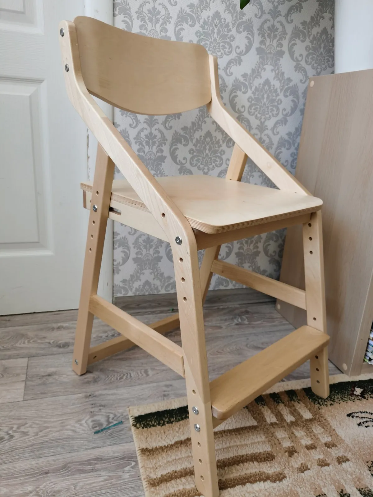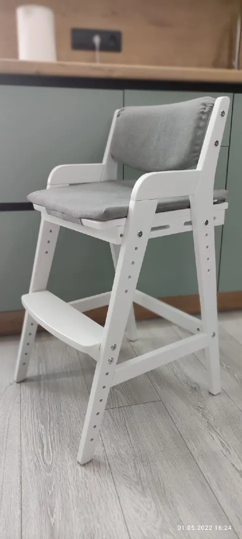 Купили растущий стул Вуди и чехол Фабрика "38 ПОПУГАЕВ". Детская мебель.ИжевскМного возможностей для регулировки: по высоте, по глубине сиденья, подножки.Чехол у стула фиксируется, легко снимается, при стирке не теряет в цвете.Краска не отпадает, хотя пользуемся давноРебенку очень нравится