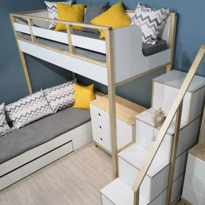 двухъярусные кровати и кровати-чердаки. Почти вдвое сокращают занимаемую площадь;