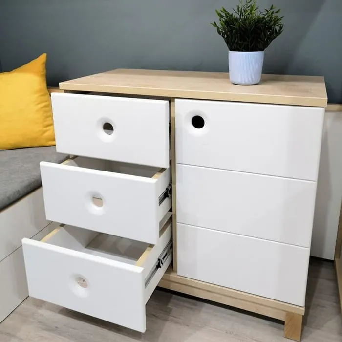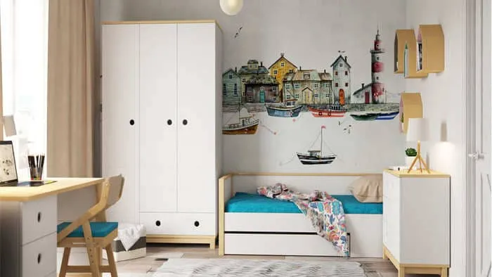 Помимо основной функции хранения, его можно использовать как перегородку. С помощью шкафа можно разделить пространство для мальчика и для девочки, создав две зоны в одной комнате.