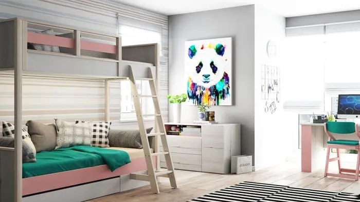 Если разница в возрасте у детей большая, то нужно предусмотреть зонирование комнаты таким образом, чтобы старший не мешал младшему ребенку вовремя засыпать.