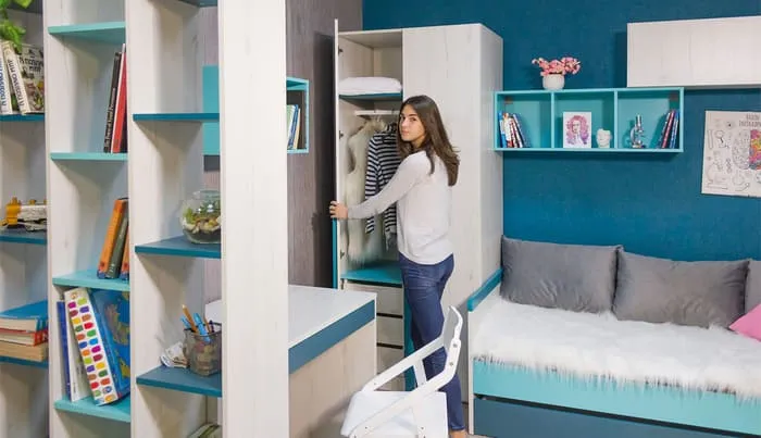 - Функциональность. Для планирования детской комнаты для разнополых детей выбор мебели с большим количество функций будет идеальным решением. Мебель может быть компактной и трансформирующейся. А значит, выполнять несколько функций враз. Сюда можно отнести: