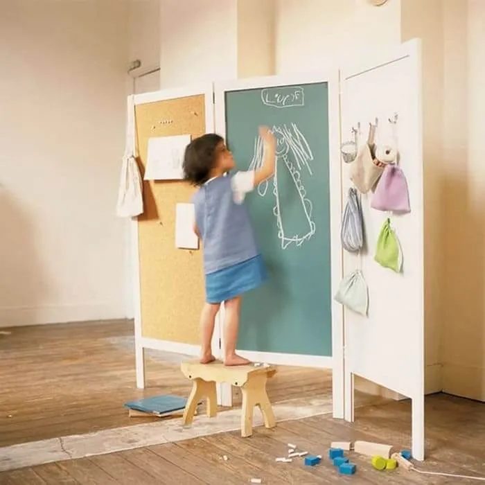 Существует немало способов зонирования детских комнат, и самый распространенный из них – перегородки. Они могут быть стационарными, мобильными, глухими или сквозными. В роли перегородок так же могут выступать шкафы, стеллажи, и даже занавески. Выбор зависит от бюджета, цели зонирования, площади и формы комнаты. Остановимся подробнее на самых популярных вариантах перегородок для детских комнат.