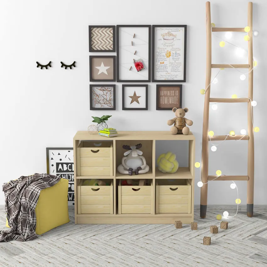 - стеллаж или большая корзина под игрушки.