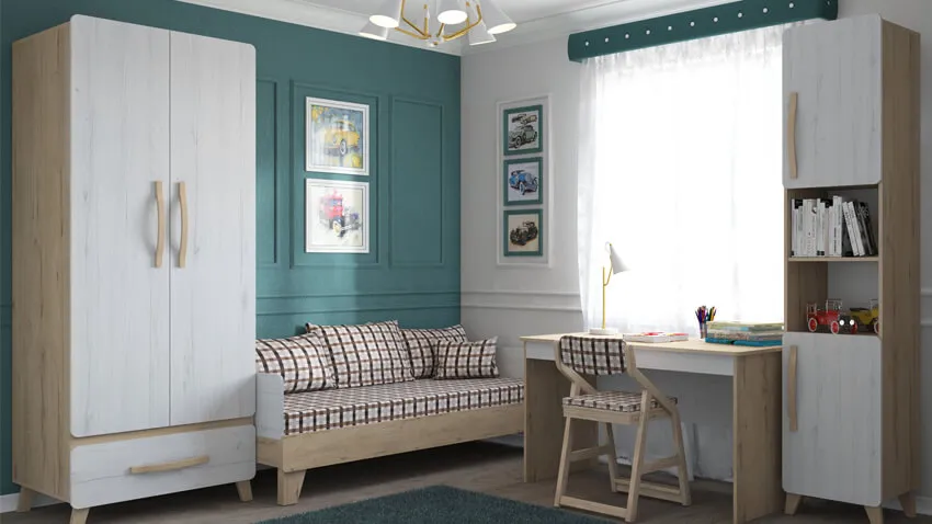 Для хранения одежды в школьном возрасте уже недостаточно детского комода, поэтому лучшим решением будет использование большого общего шкафа совместно с родителями либо покупка малогабаритного отдельного шкафа для школьника.