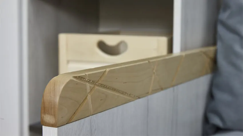 На фото: Кровать верхняя правая малая без лесенки шкаф справа со сплошным ограждением