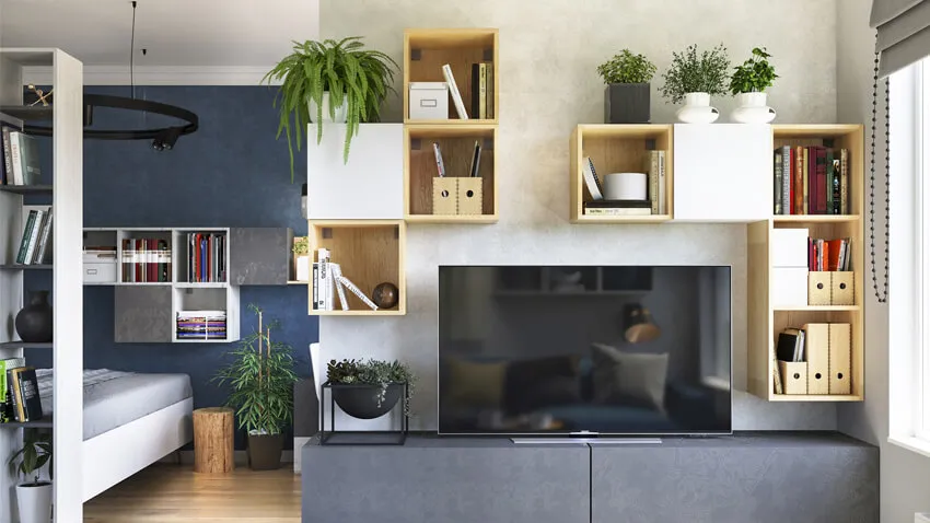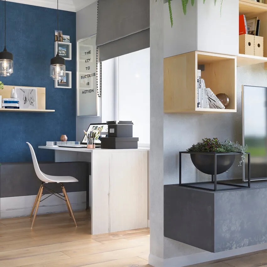 Одним из самых актуальных стилей на данный момент считается эко стиль. Он отлично подойдет для оформления интерьера маленькой однокомнатной квартиры. Используйте светлую мебель на ножках — это добавит «воздуха» помещению.