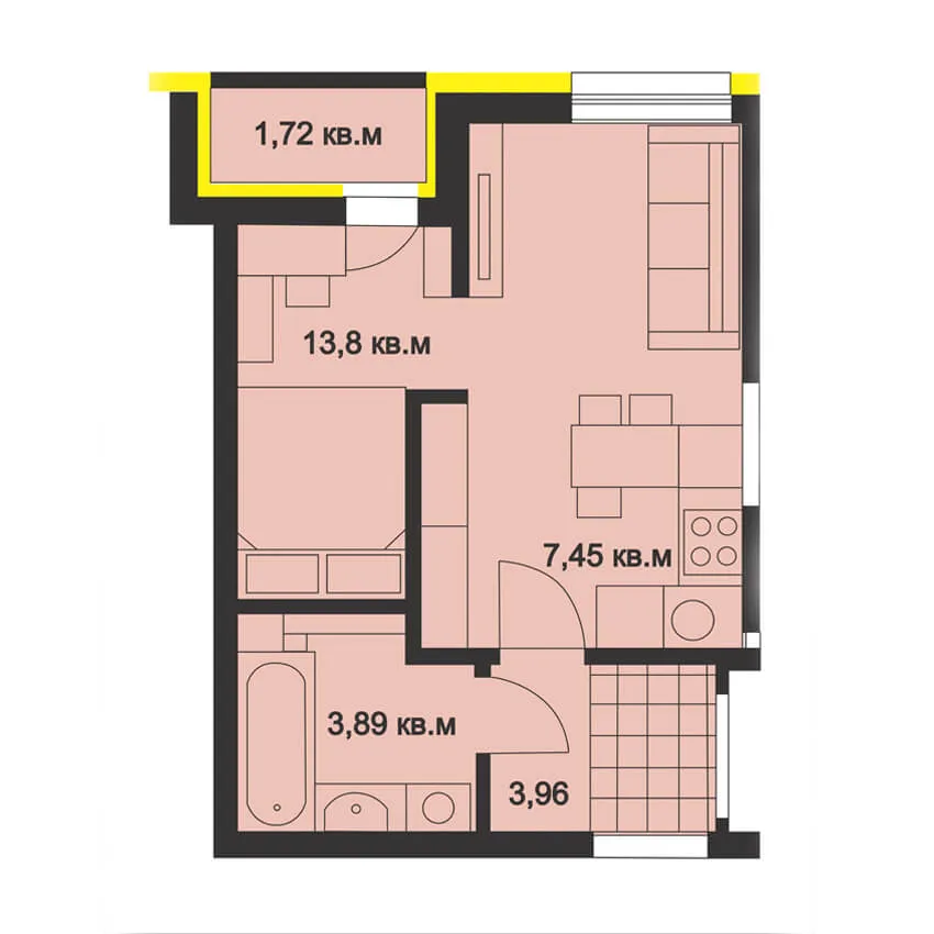 - Основные зоны в однокомнатной квартире