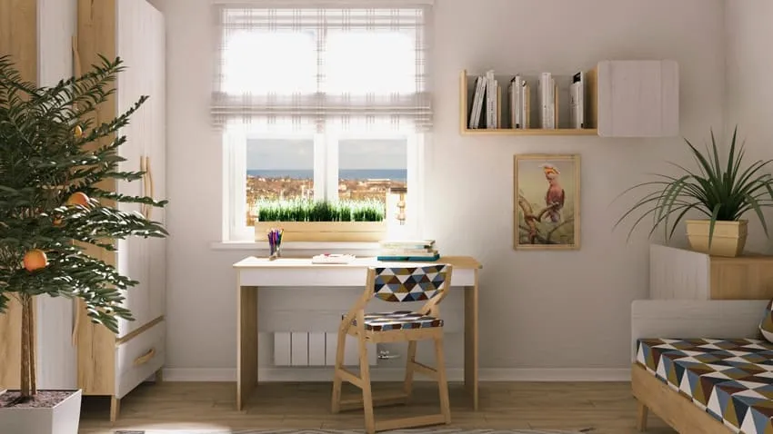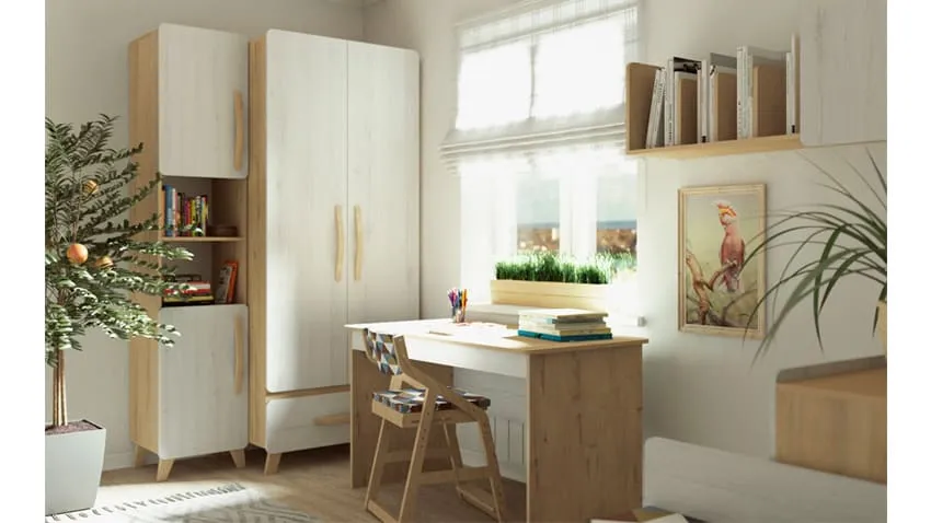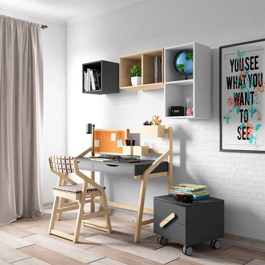 В учебной зоне разместите письменный стол. Для скандинавов характерны минималистичные модели, но главное чтобы они подходили для занятий.