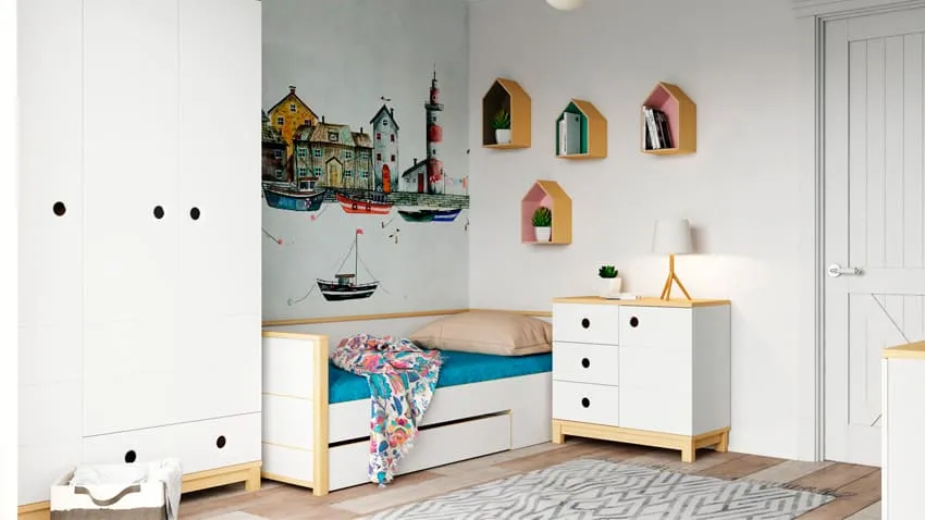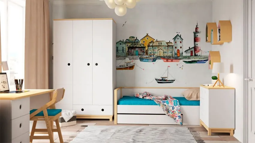 Оформление детской комнаты с белой мебелью