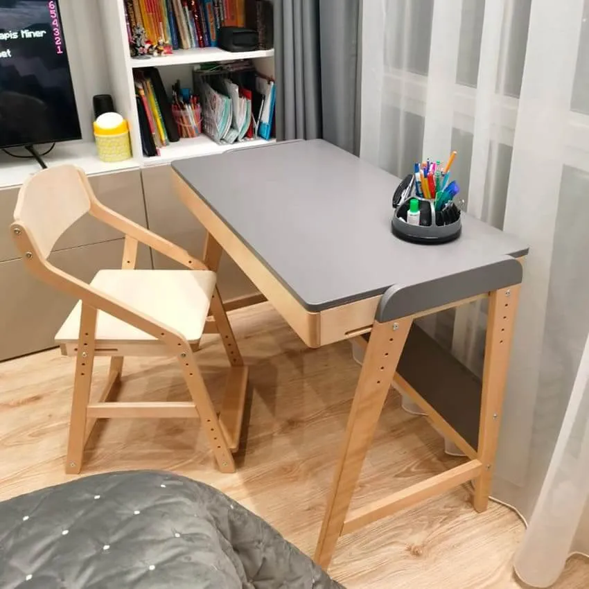 Если ребенок еще маленький или только-только собирается в школу, предпочтение лучше отдать растущей мебели. Специальные конструкции столов и стульев регулируются относительно роста ребенка и поддерживают его осанку всегда в правильном положении.
