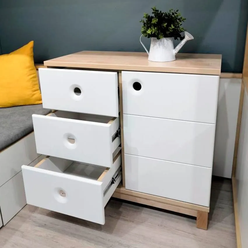 В качестве дополнительных предметов мебели вам могут пригодиться: комод или система хранения под игрушки.