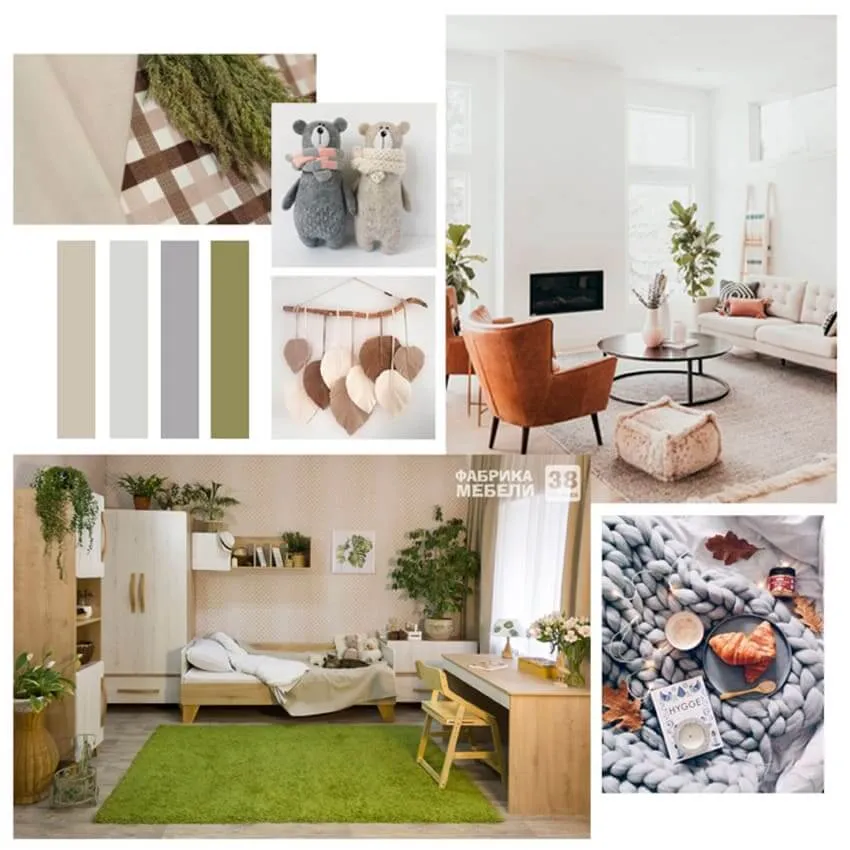 Теплоты так же поможет добавить зелень, будь то это живые растения или нарисованные на фотообоях.