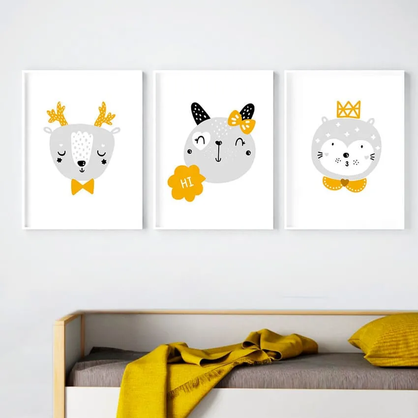 Важным дополнением являются тематические постеры, картины или фотографии. На нейтральном цвете стен они будут отлично смотреться. Детские рисунки, оформленные в деревянные рамки, внесут в интерьер индивидуальности.