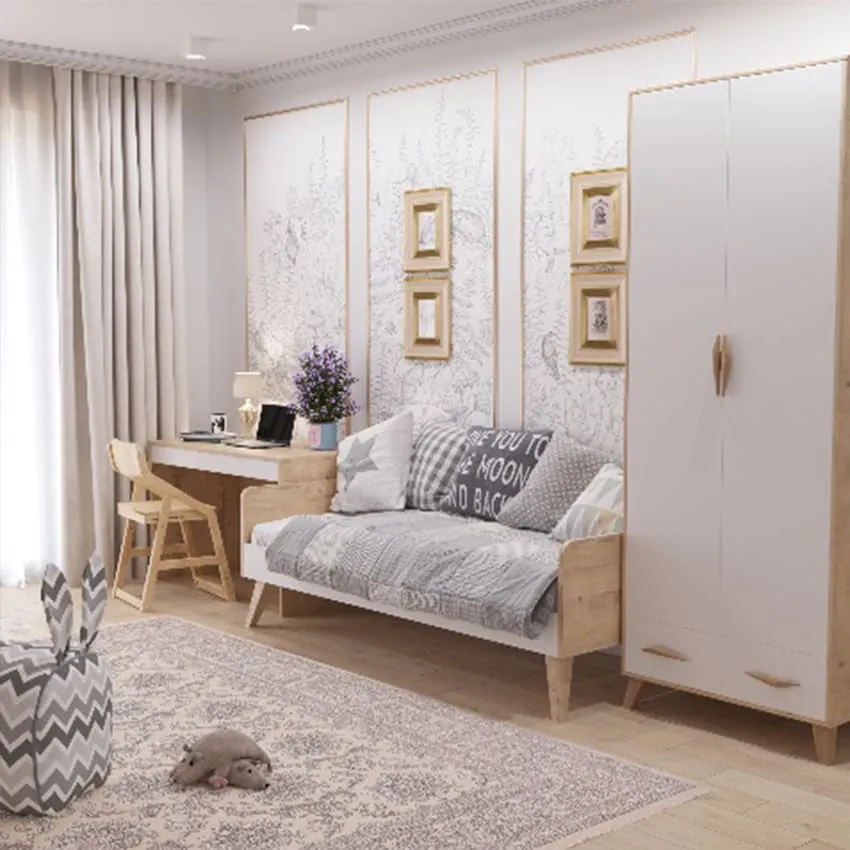 Классический стиль представляет собой традиционную, спокойную и элегантную обстановку с универсальным применением и нейтральным гендерным характером. Он может быть идеальным выбором для смешанных или общих детских комнат. Чтобы избежать слишком взрослого и скучного впечатления, важно добавить яркие и радостные цветовые акценты. Преимущество классического стиля заключается в его неподверженности модным тенденциям, поэтому такой интерьер будет актуален на протяжении многих лет, что делает его практичным выбором.