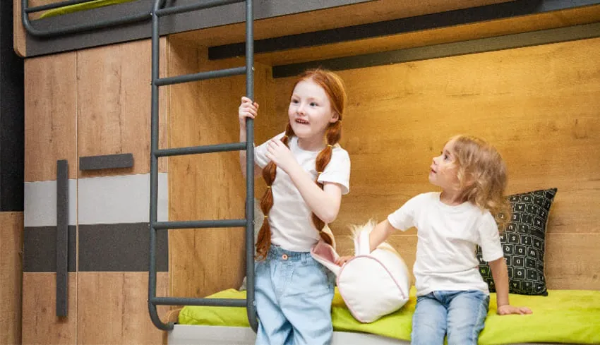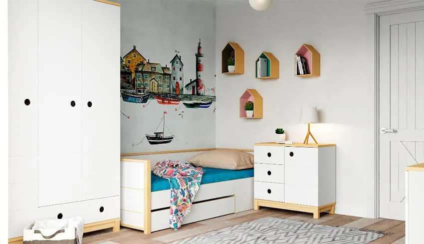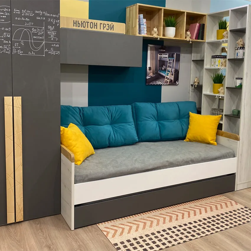 Если вам нужно разместить трех детей в небольшом пространстве, потребуются нестандартные решения при выборе мебели и планировании функциональных зон. Тут может оказаться уместна как классика жанра вроде двухэтажной кровати, так и более новаторские решения – подиумы и выдвижные кровати.