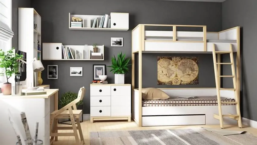- Как с помощью мебели зонировать пространство в комнате для двоих детей?