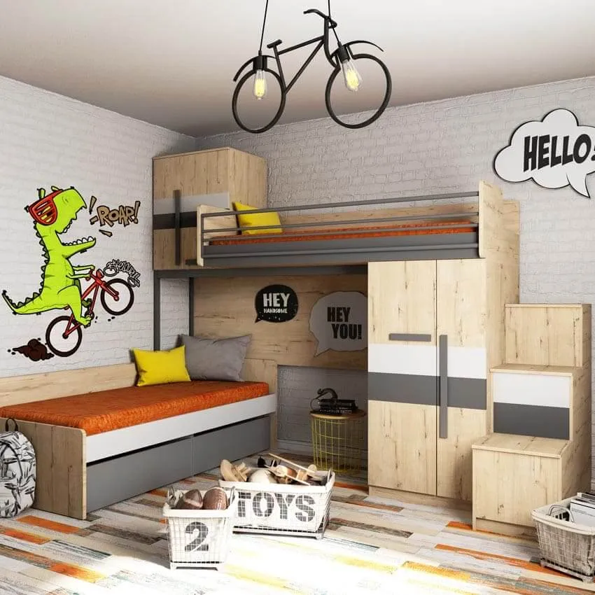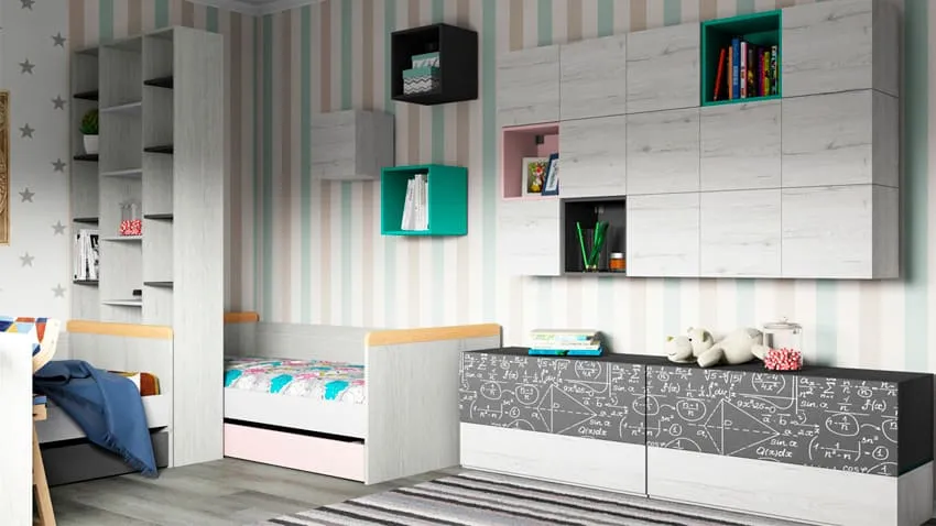 Мебель-трансформер – также настоящая находка для интерьера комнаты двоих детей. Она позволяет экспериментировать, экономить место и разграничивать пространство. Один блок мебели-трансформера может преображаться сразу в несколько разных предметов мебели.