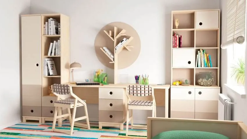 В комнате для двух детей необходимо обустроить отдельную рабочую зону для каждого ребенка. Дети не должны мешать друг другу выполнять домашние задания.