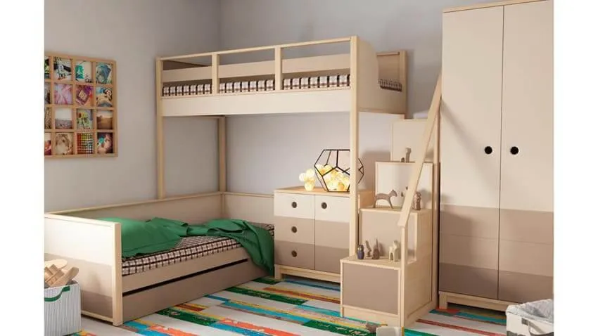 Другое выигрышное решение спальных мест для двоих чад – кровать-матрешка.