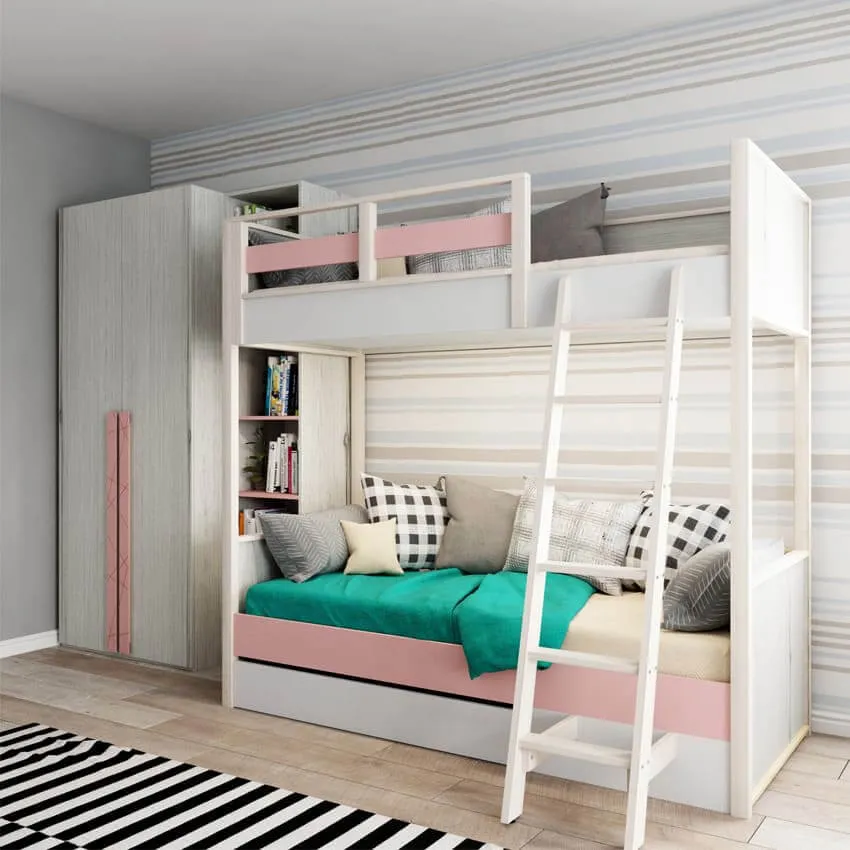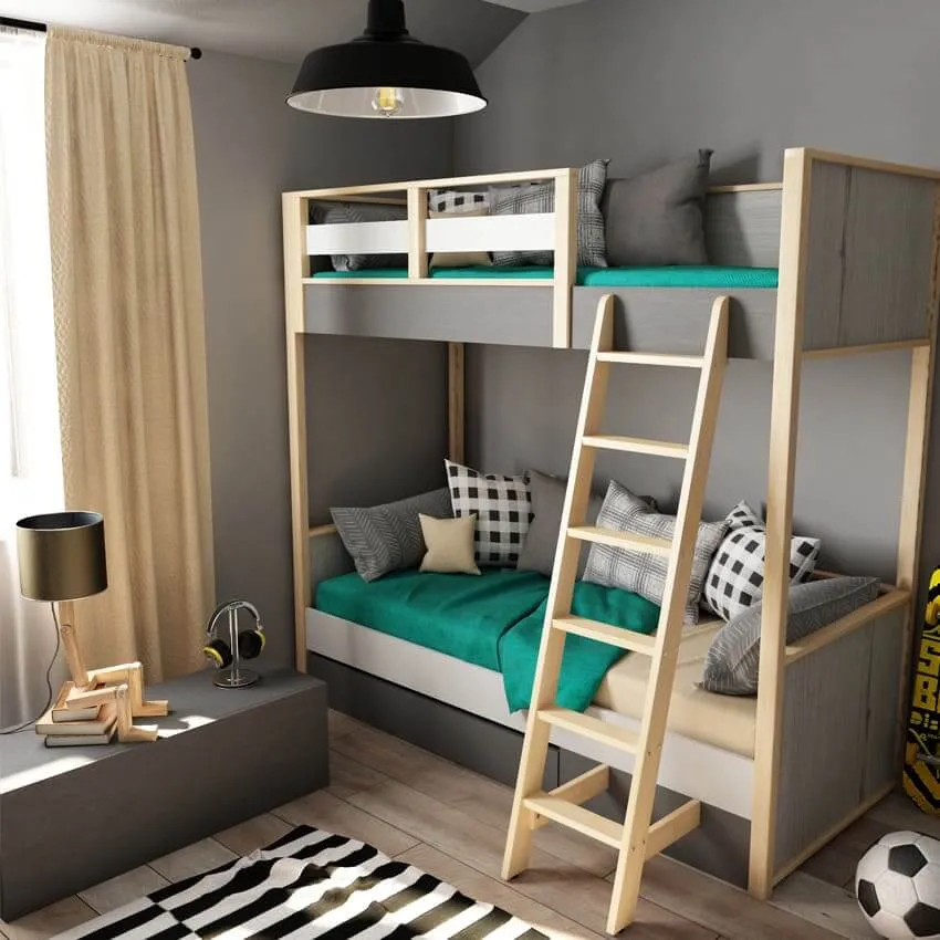 Одна из самых главных проблем при оформлении детской спальни для мальчика и девочки – организация спального места каждому ребенку. Очевидная и популярная идея решения этой задачи – двухъярусная кровать.
