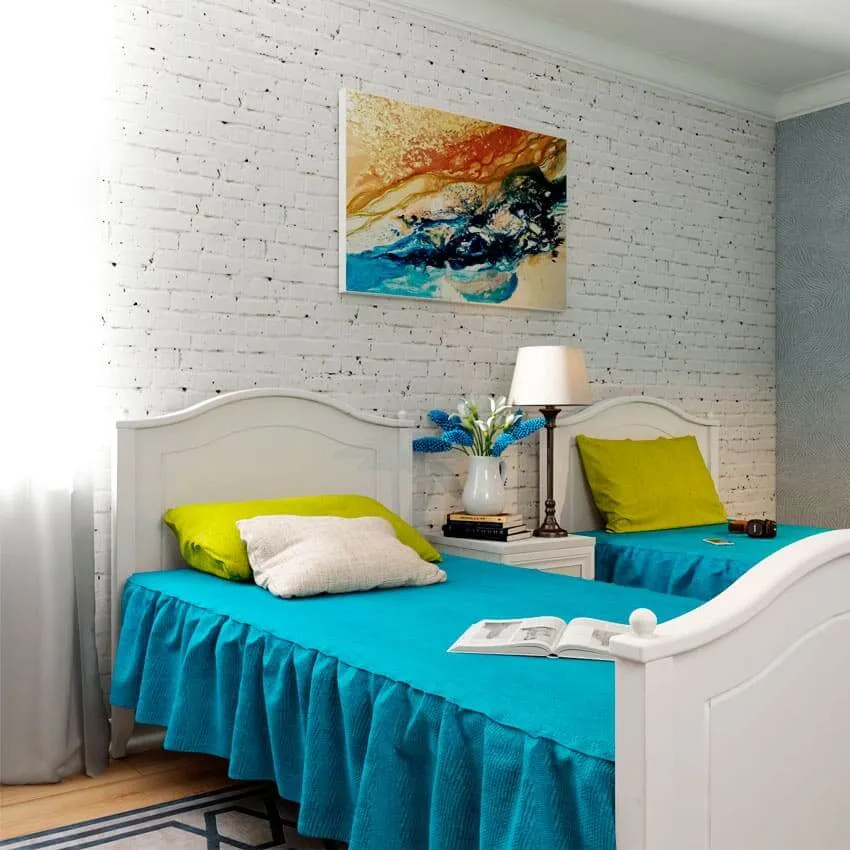 Конечно, если пространство комнаты позволяет, можно остановиться и на самом простом и традиционном решении – двух отдельных островных кроватях. Такой вариант особенно хорошо впишется в комнату детей постарше, которым хочется чуть больше свободного пространства.
