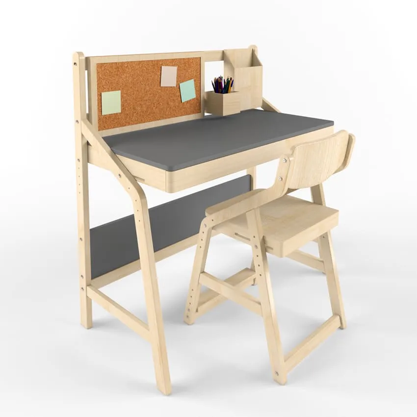 Отличным вариантом будет растущий стул из дерева. У такой модели можно отрегулировать высоту сидения и подставки для ног, а спинка поддерживает анатомическую форму позвоночника.