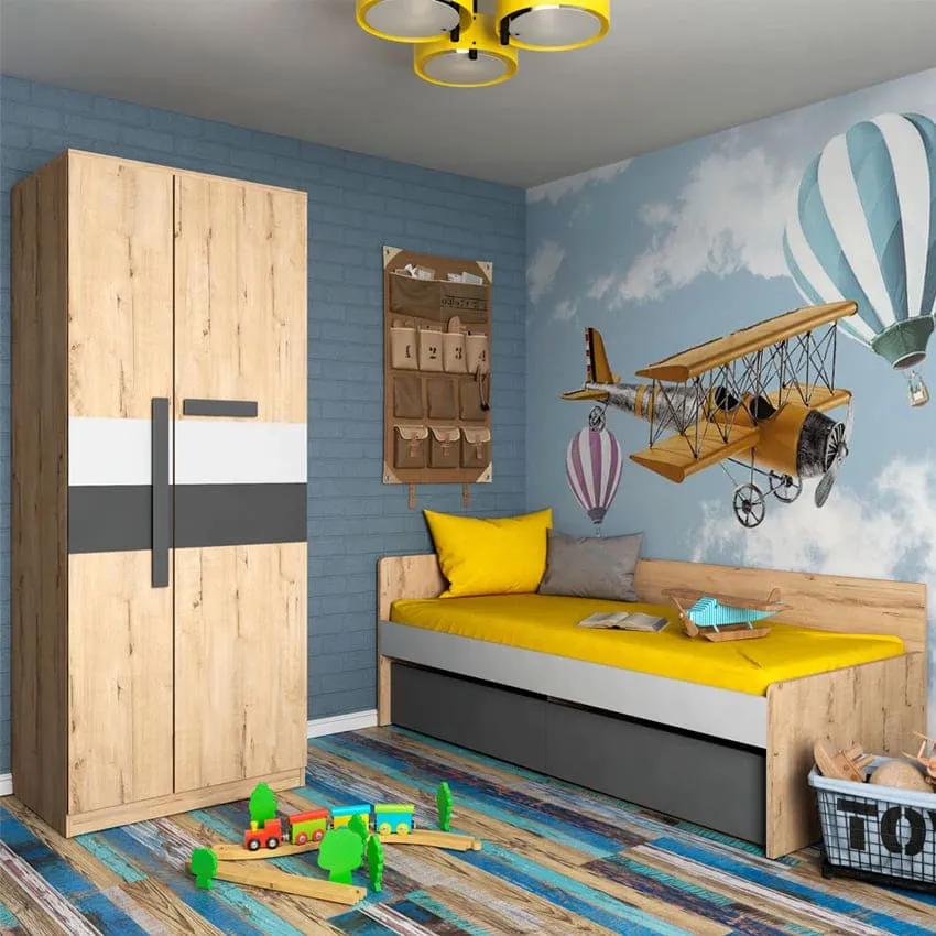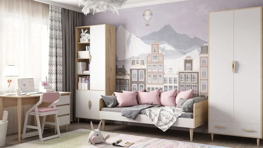 В-третьих, безопасность. Избегайте мебели, которая несет риск для ребенка. Например, мебель из стекла или мебель с острыми углами не подойдет, особенно, для узкой комнаты. К тому же, лучше всего выбирать мебель с плавно закрывающимися петлями, чтобы не прищемить пальцы при использовании дверей шкафов и ящиков.