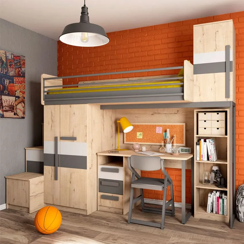 Насыщенное двухцветное решение в детской комнате также может стать ключевой дизайнерской идеей. Например, сочетание серого пастельного с оранжевым наполнит комнату жизненной силой и энергией. Такой вариант подойдет креативным детям и подросткам.