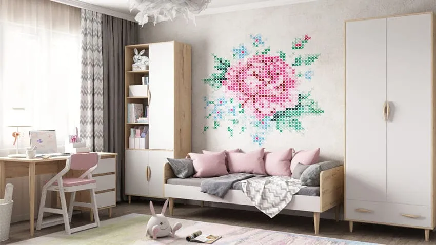 Любая девочка будет в восторге от красивых ваз, шкатулок и цветов, поэтому смело украшайте комнату совместно с дочкой!