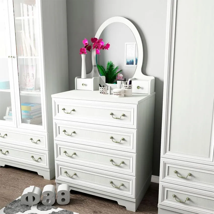 Не лишним будет поставить в комнате комод, на который можно установить зеркало. Получится функциональный и красивый гарнитур.