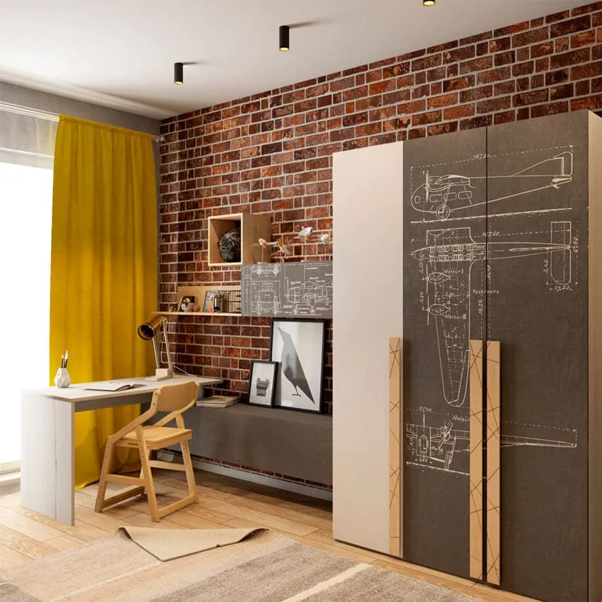 Учитывая, что мальчики очень активные и часто зовут в гости друзей, мебель должна быть надежно закреплена к стене, а текстиль лучше выбирать прочный и немаркий.