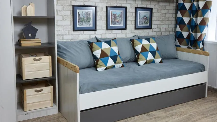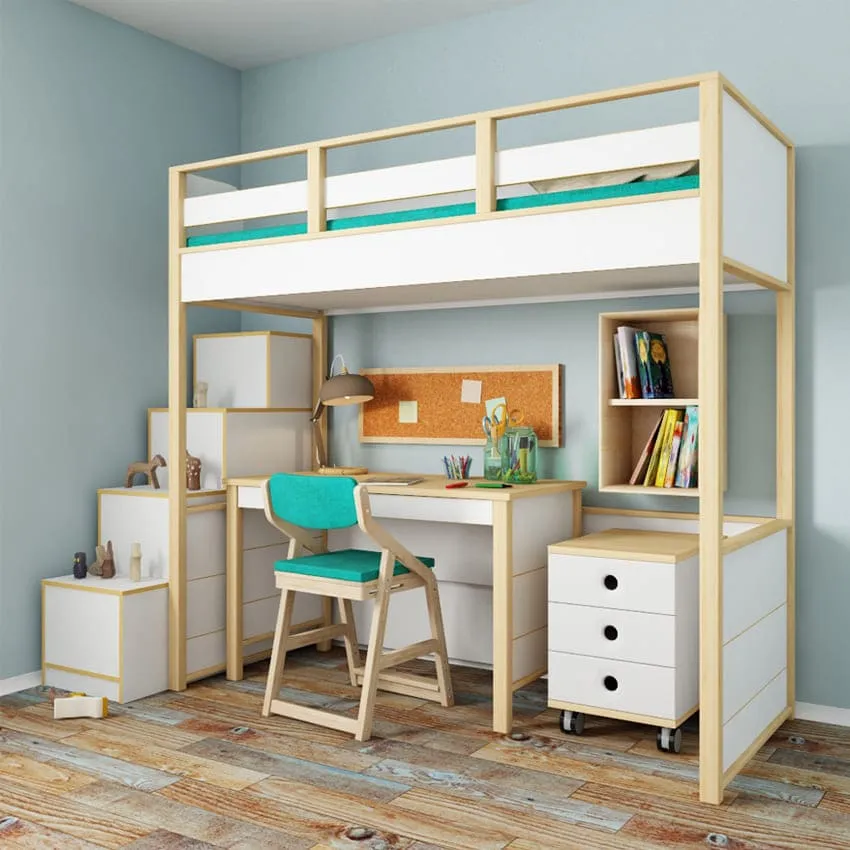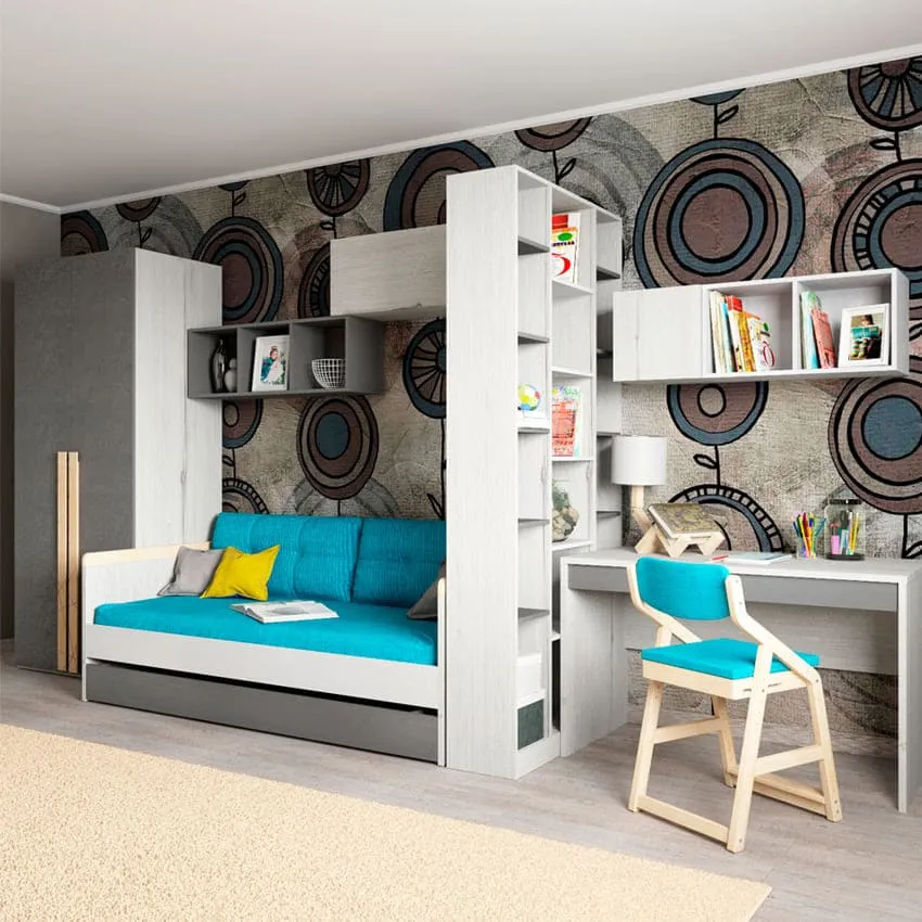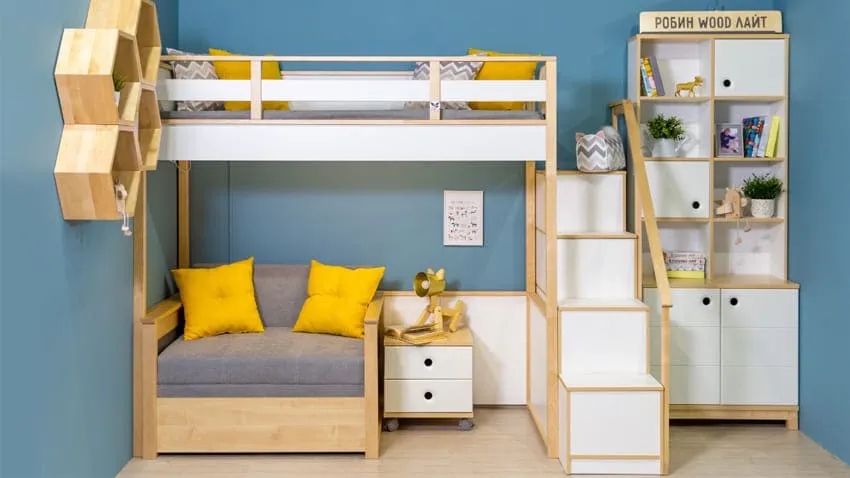 При выборе кровати стоит обратить внимание на двухъярусный вариант или на кровать-чердак с диваном внизу. Таким образом, останется достаточно места для остальных зон.