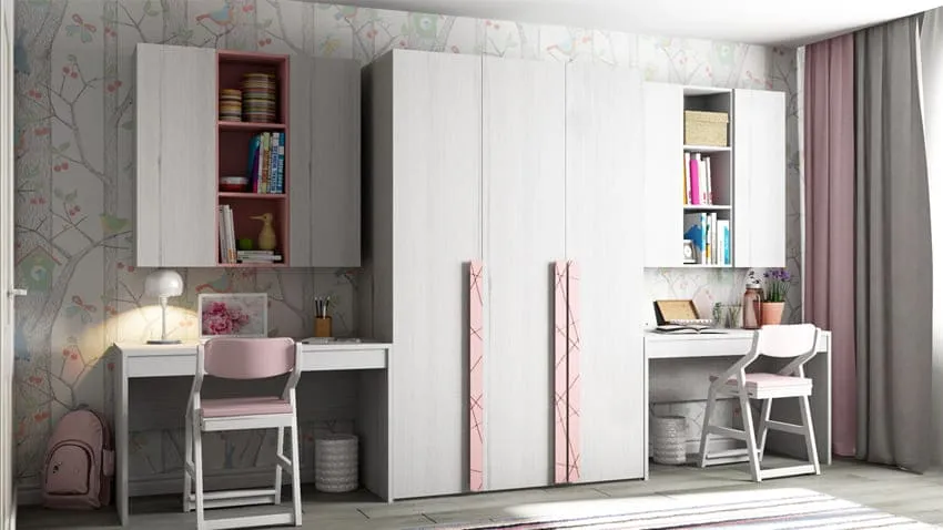 При обустройстве детской комнаты для двоих детей, в первую очередь следует ориентироваться на их возраст. Хорошо, если разница между ними небольшая и потребности детей не сильно отличаться друг от друга. Можно просто подобрать мебель из одной коллекции в двойном экземпляре.