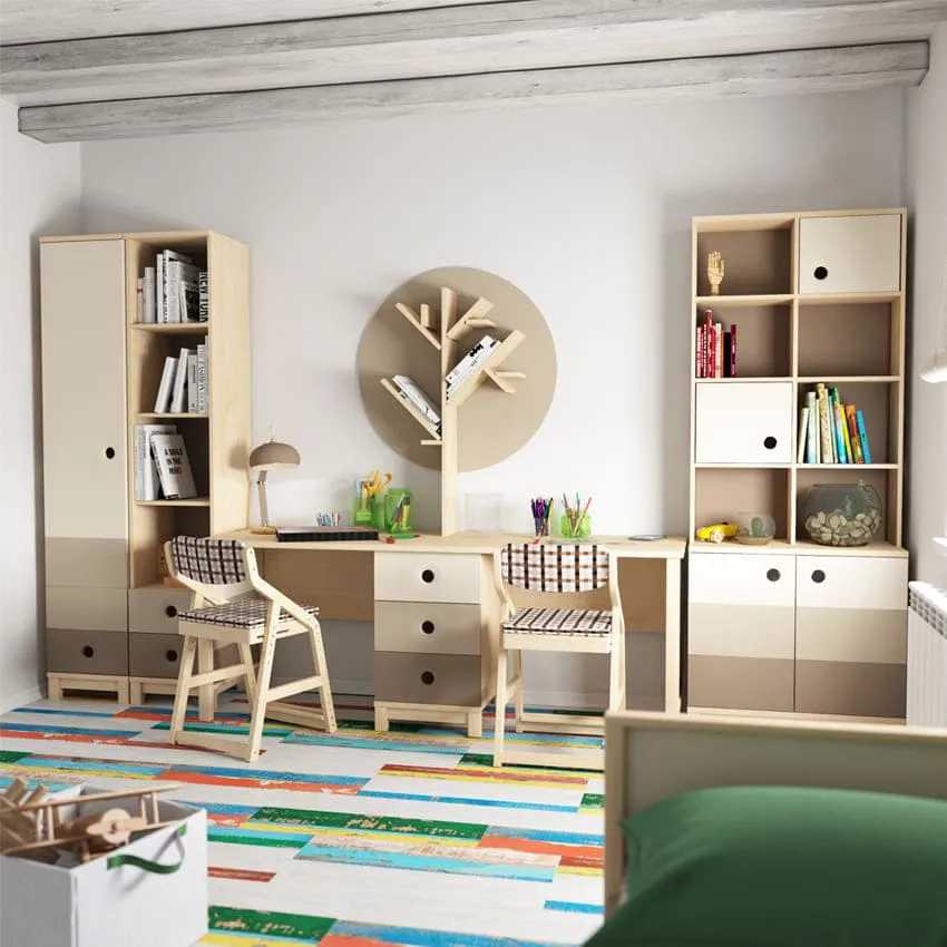 Важно! Все предметы мебели подбирайте и устанавливайте в соответствии с ростом ребенка. Это касается как стульев и столов, так и кроватей, шкафов, полок. Очень важно, чтобы ребенок сам мог доставать и складывать все необходимое, дотягиваться до всех полок и уметь самостоятельно открывать все дверцы. Сегодня отличным вариантом для детских комнат является мебель, которая "растет" вместе с ребенком с самого раннего возраста - например, регулируемые стулья и столы. Они помогут сохранить здоровую осанку и комфортно заниматься.