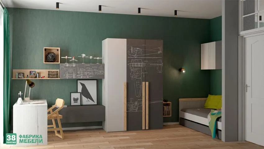 Например, спальная зона - в пастельных, теплых оттенках, текстиль с бархатистой, мягкой поверхностью, приглушённый свет бра или ночника. Учебная зона в спокойных, но более деловых цветах: голубом, зелёном, светло сером. Акцент на информационных постерах: географических картах, схемах, таблицах. В игровой зоне - яркие, активные цвета за счет текстиля или игрушек. Это поможет ребёнку легче переключаться от учёбы к отдыху или играм и наоборот.