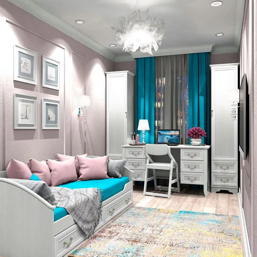 Подбор цветовой палитры для интерьера длинной узкой детской комнаты