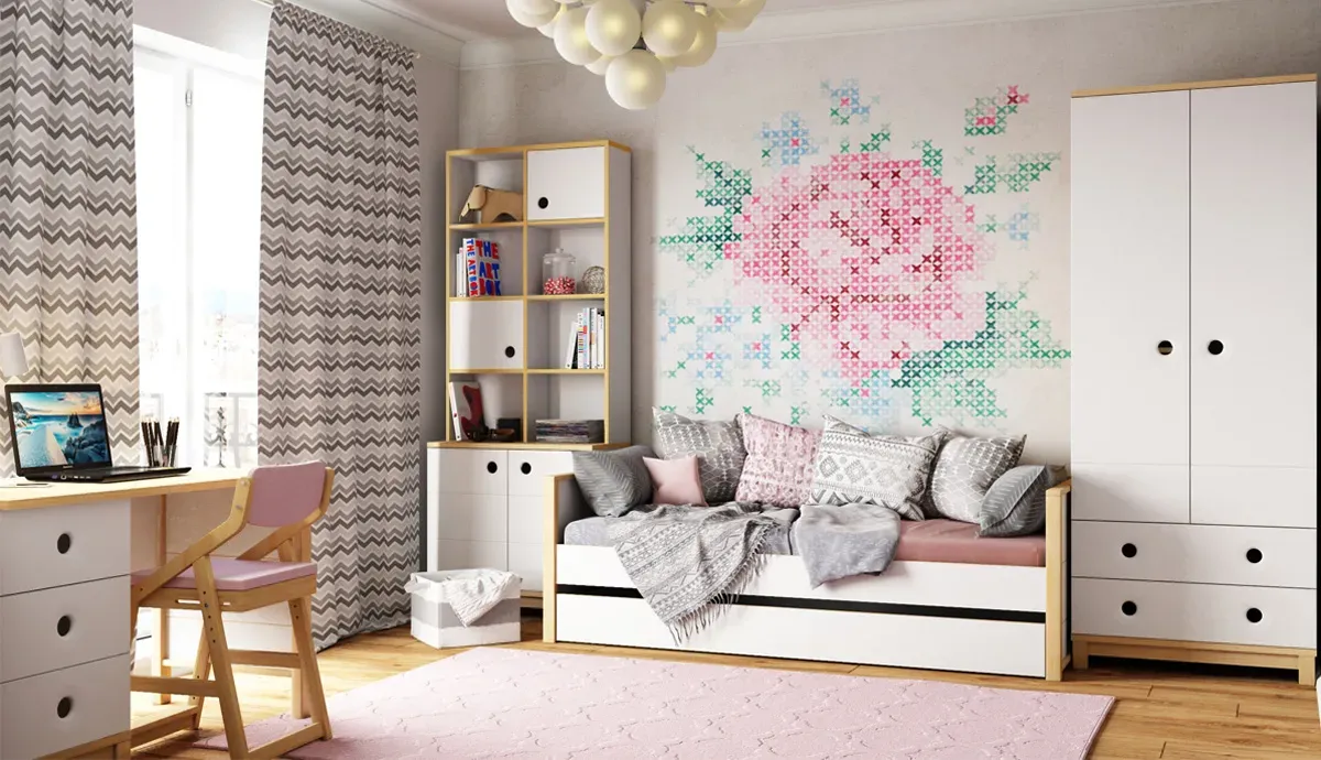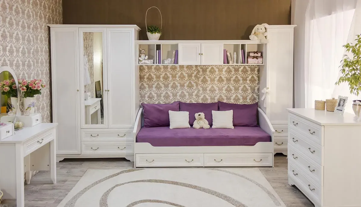 Что касается цвета, то юным леди подойдут светлые сдержанные оттенки. А вот дизайн может быть абсолютно разный: от классики до лофта и минимализма. Единственное, остерегайтесь слишком экзотического внешнего вида мебели, ребенок быстро вырастет и его вкусы поменяются.